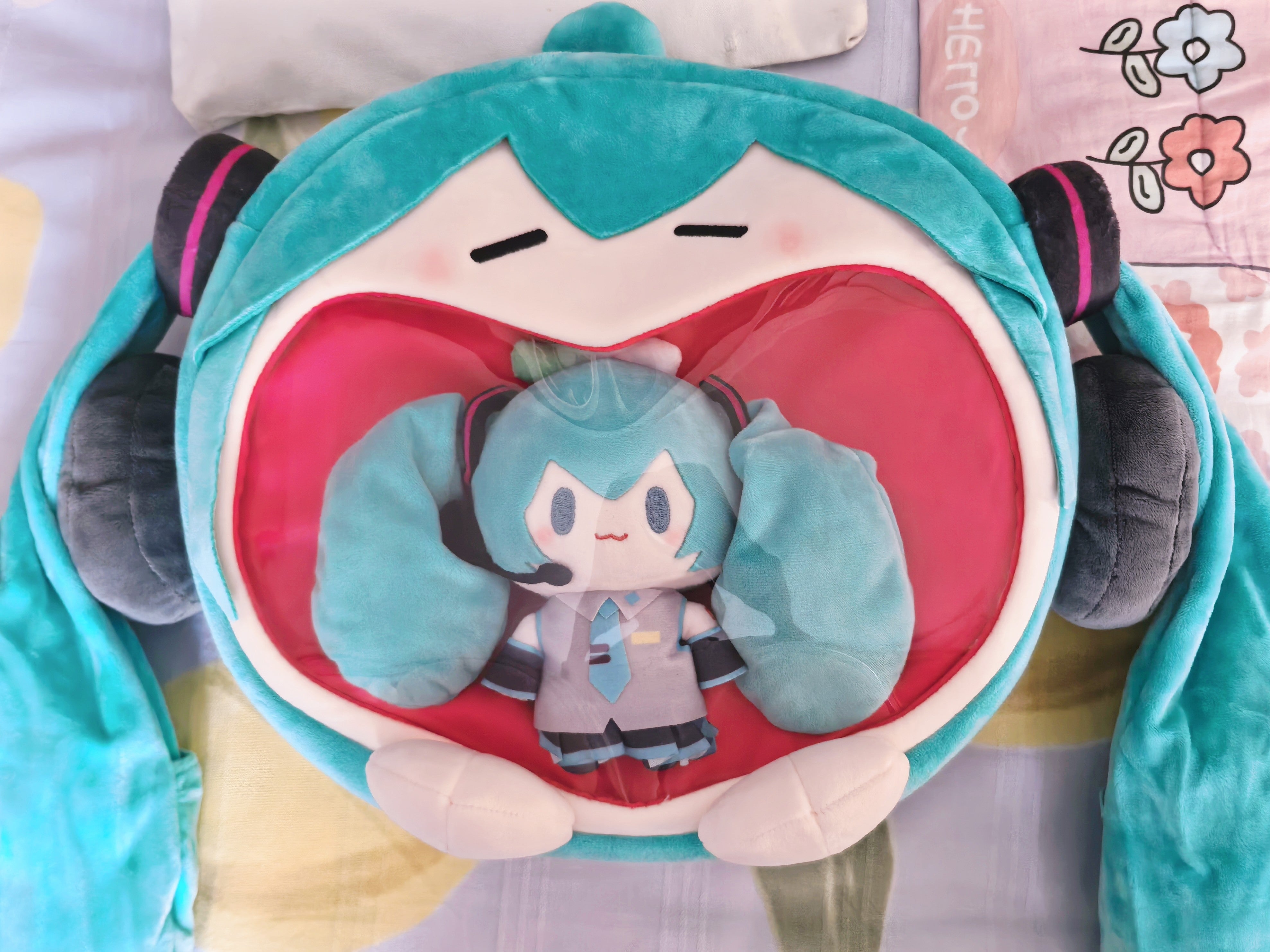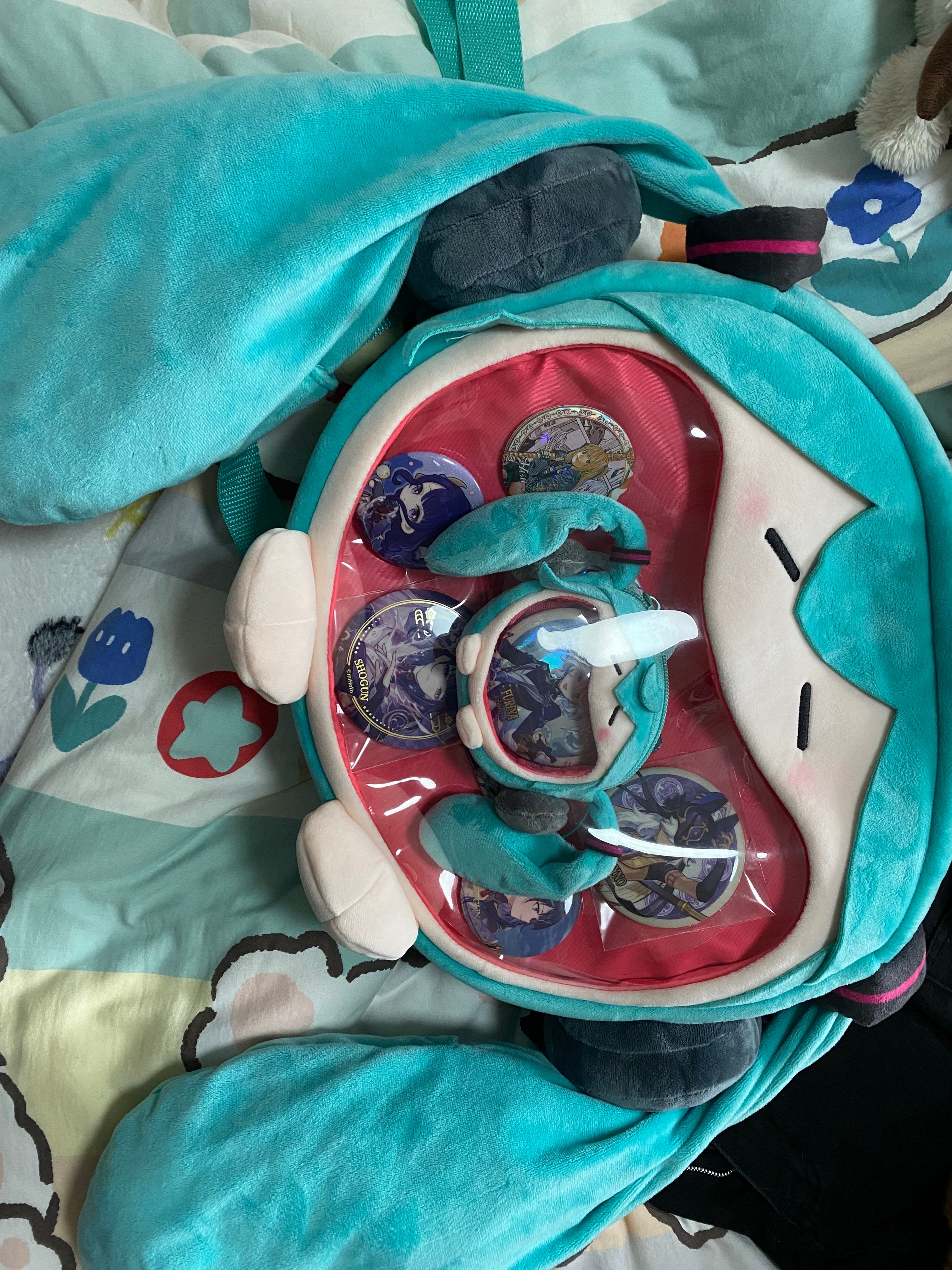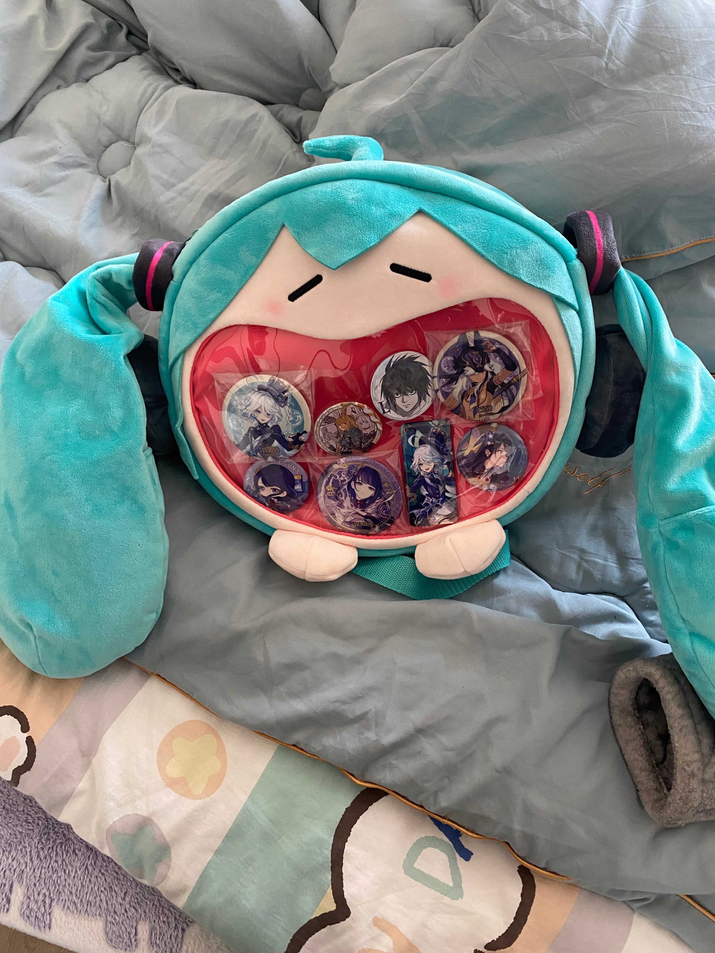 Hatsune Miku Fufu Plush Ita Backpack | Soft Anime Doll Bag with Clear Mouth Window