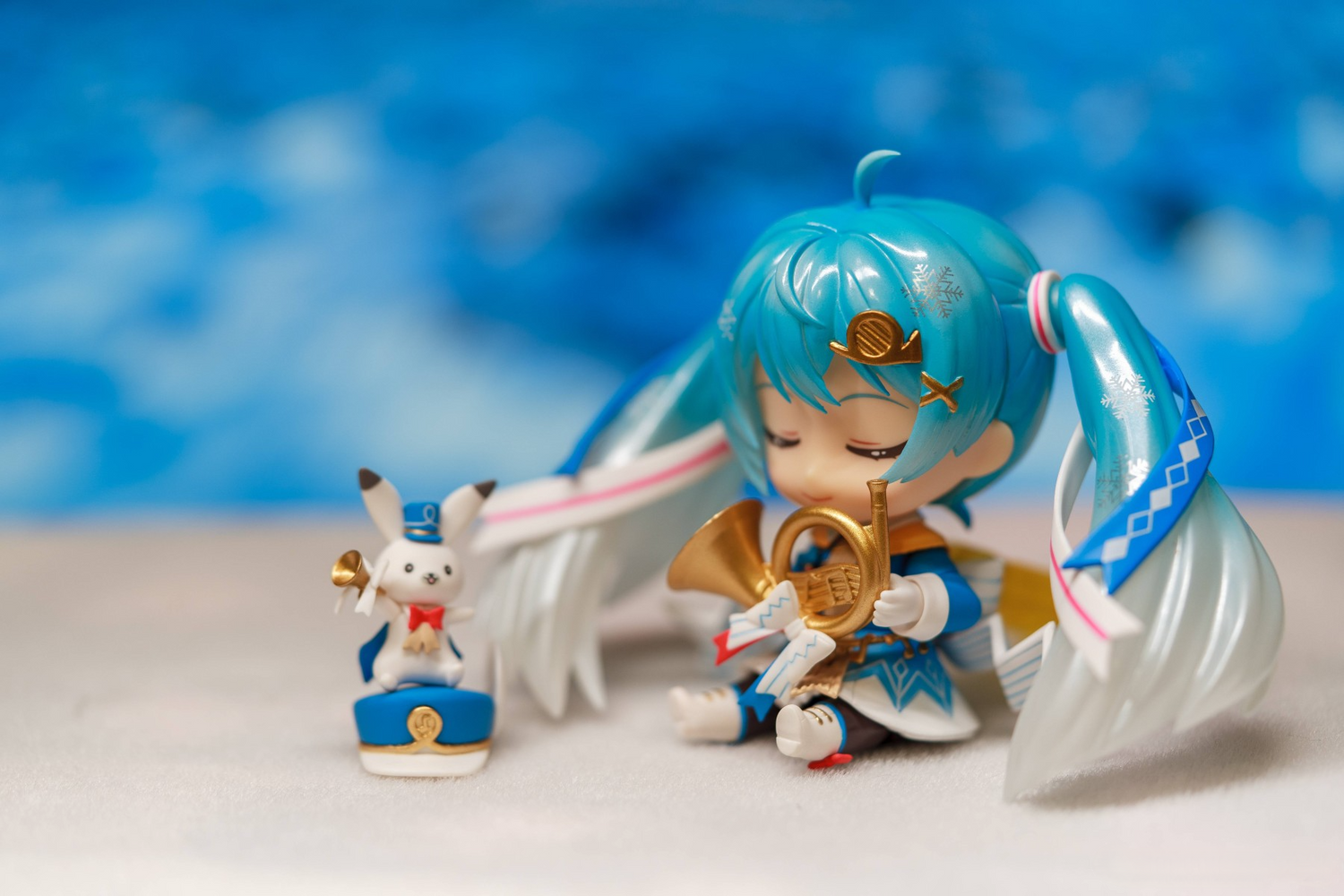 Snow Miku 2020 arrives to “play” winter—an energetic marching-band theme chosen by online vote, based on Maple’s winning design for the Hokkaido snow motif “Instruments.” Her feathered hat, ribbon accents, and sparkling trims give her a festive parade charm alongside her partner, Rabbit Yukine.